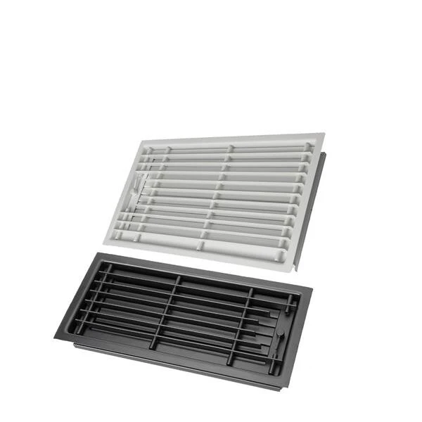 Komplett mit verstellbaren Lamellen und Abdeckgitter.