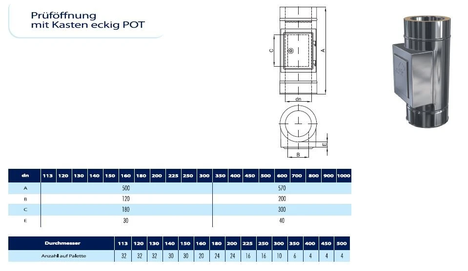 Edelstahlschornstein DW Reinigung mit Tür