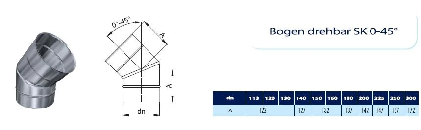 Edelstahlschornstein Einwandig Bogen drehbar 0° – 45 Grad DN 113 mm
